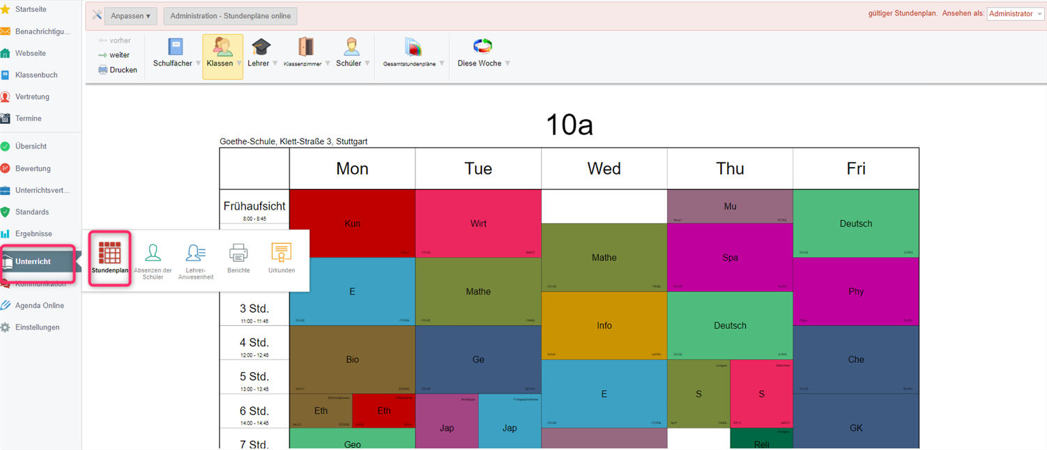 Gehen Sie zum Stundenplan: Unterricht - Stundenplan