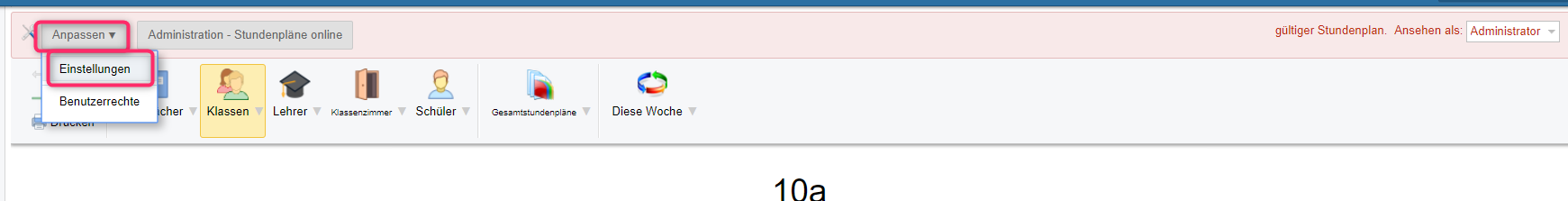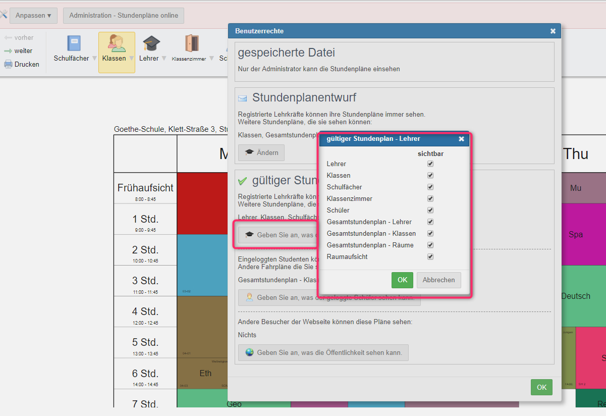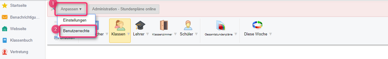 Unter Benutzerrechte können Sie einstellen welche Gruppen welche Stundenpläne einsehen können. Klicken Sie auf Anpassen - Benutzerrechte