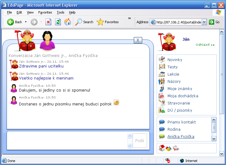 12. Chat v rodine, mama, otec sú na chate, na tom istom mieste kde sa pozerajú známky. To snáď zvládnu. U rodičov v práci často býva problém spustiť ICQ, browser chat by mal fungovať všade.