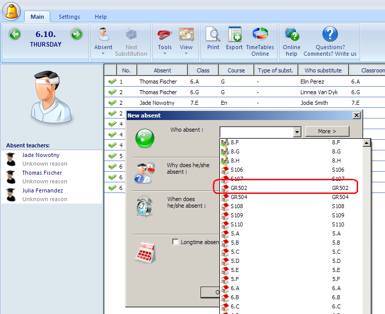 How to input absent classroom