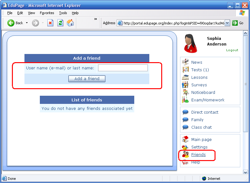Click button Friends and type the whole last name of the person you want to add as your friend: