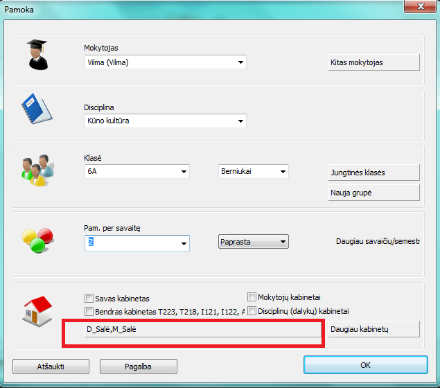 Bent viena pamoka per savaitę turi būti tam tikrame kabinete