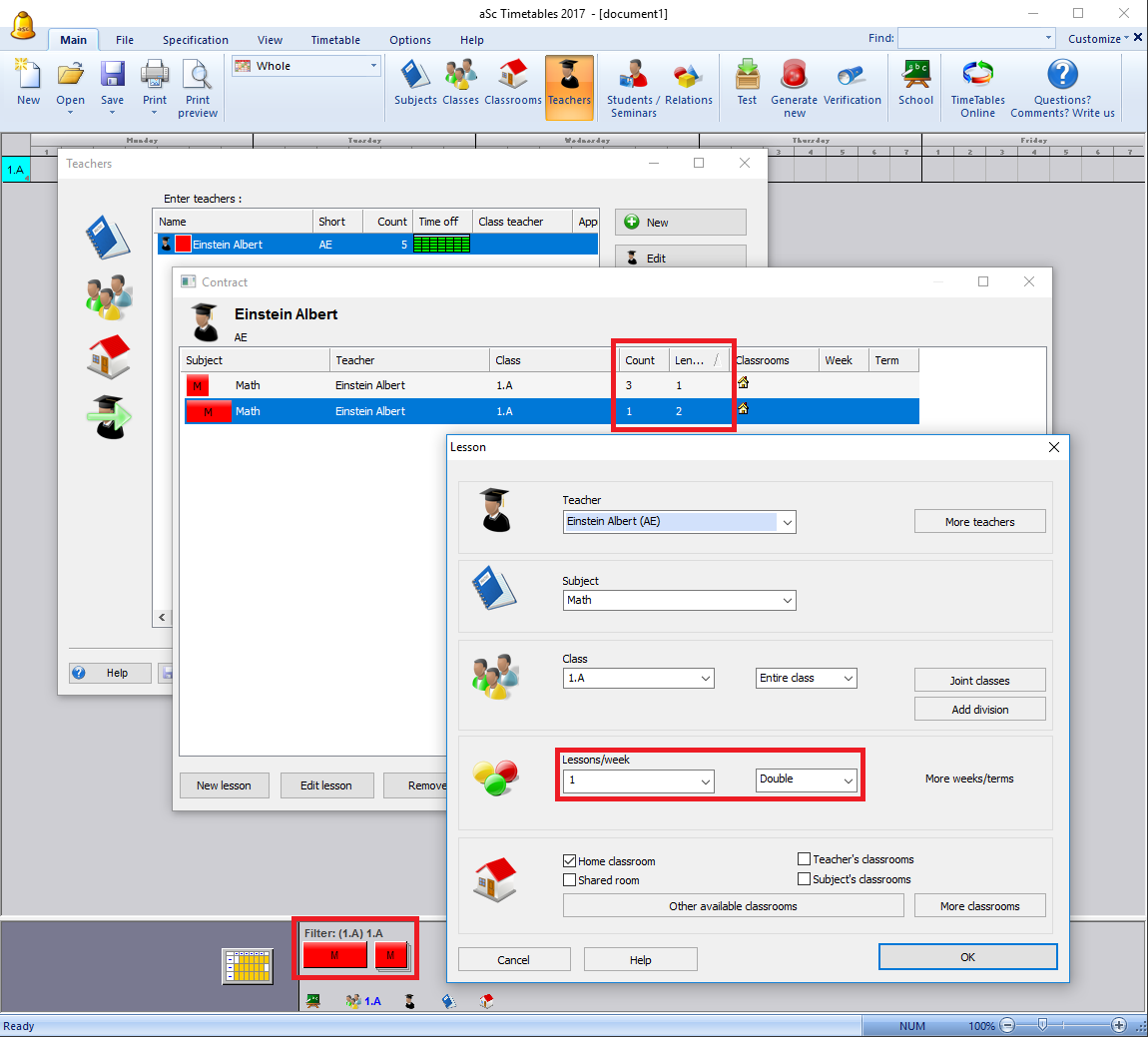 Quiero tener lecciones solas Y dobles de una asignatura! E.g 1+1+1+2