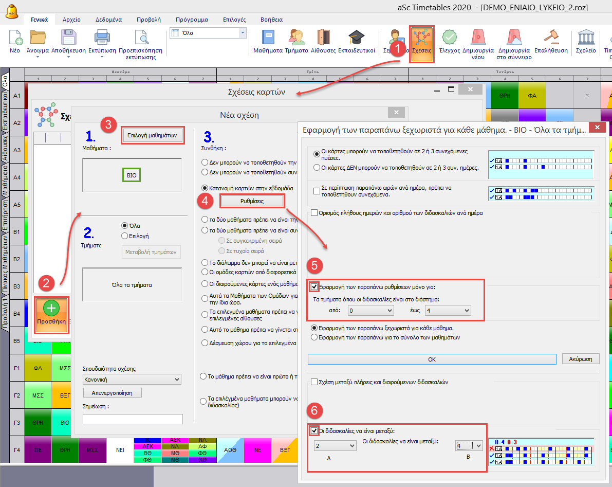 Για τμήματα που έχουν περισσότερες διδασκαλίες Βιολογίας ανά εβδομάδα μπορείτε να ορίσετε μία άλλη σχέση καρτών.