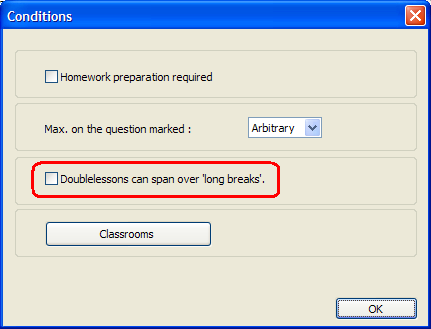 If you allow certain double lessons to span while others not that you can define for each subject individually if double lessons of this subject can or cannot span over the breaks. You can do this in subject Constraints: