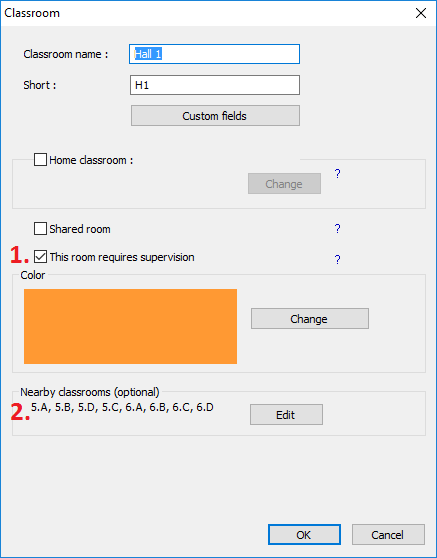 Препоръчително е също така да въведете съседните класни стаи 2 в тази част на училището. Тази информация помага при определяне на дежурните учители – по-добре е да изберете учител, които е преподавал в някоя от близките класни стаи преди или след времето за дежурство.