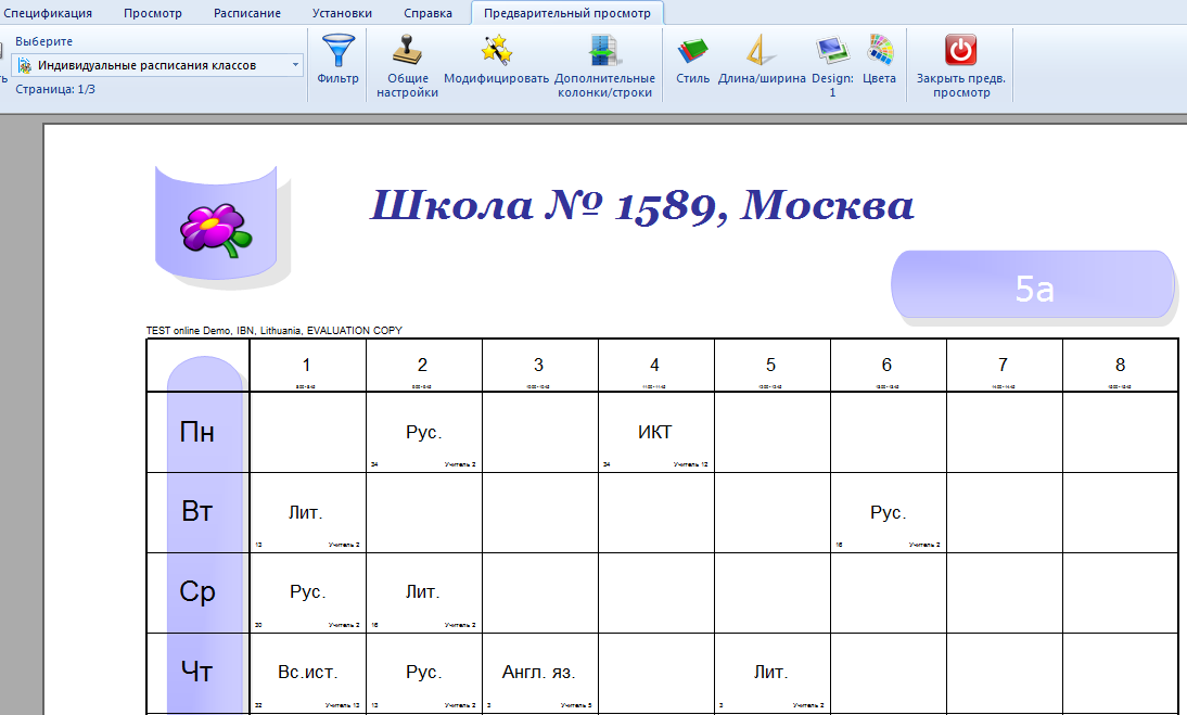 Тогда нажмите кнопку Дизайн. Выберите дизайн, нажмите кнопку Применить. Программа спросит, хотите ли Вы применить этот дизайн к выбранному классу или ко всем классам.