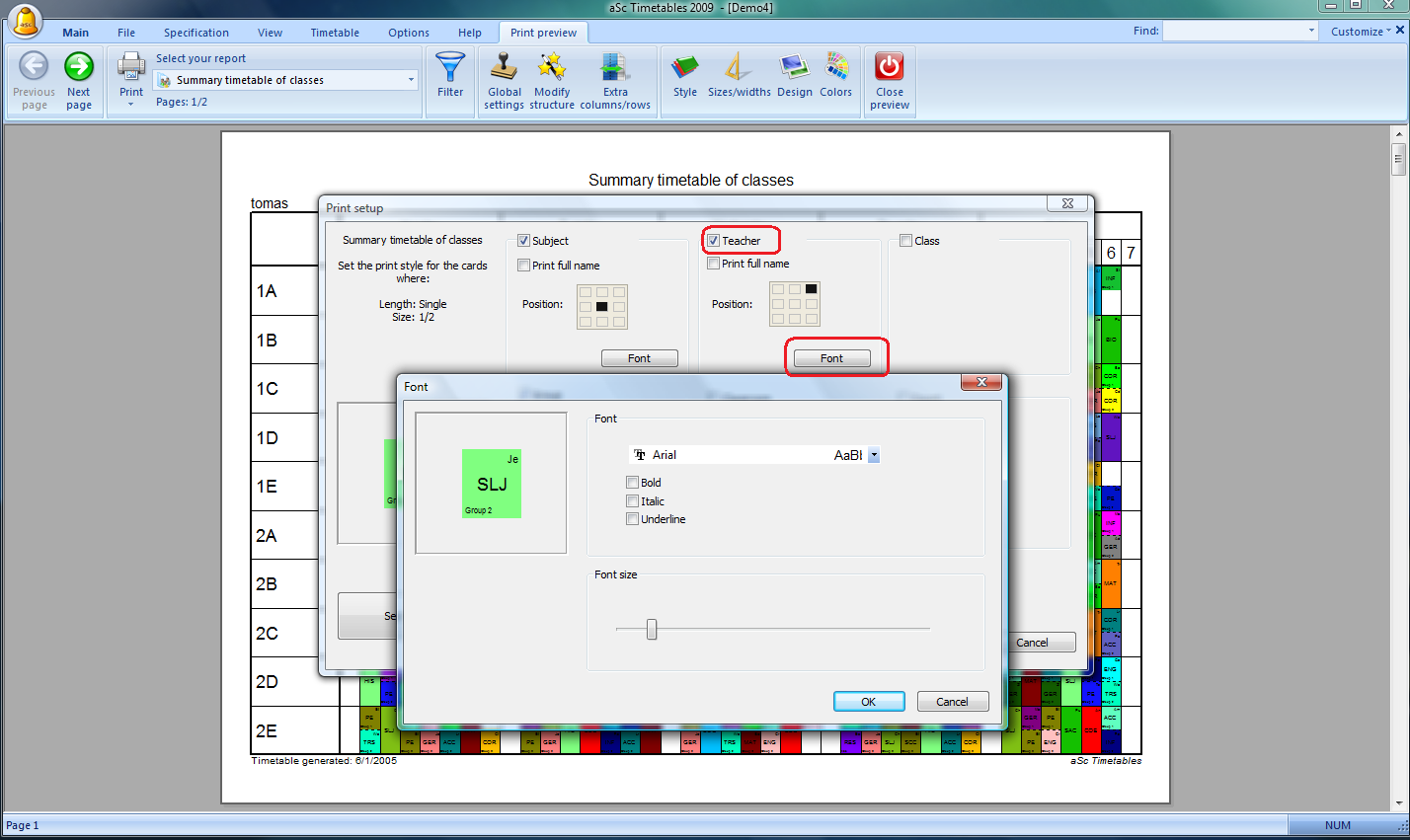 También puede especificar el tamaño de fuentes y posiciones de cada elemento que quiere imprimir.