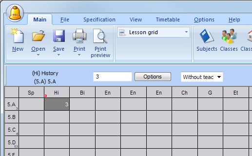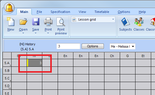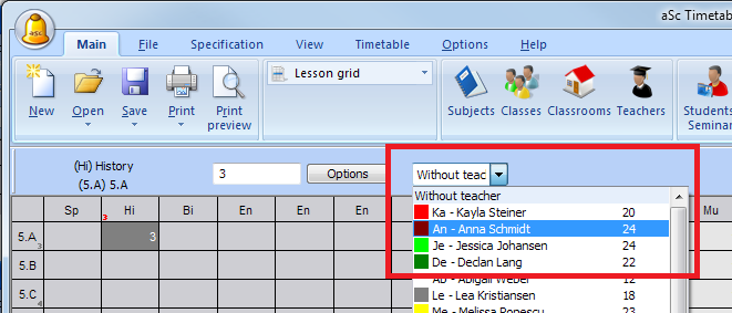3. Keď už viete, tak môžete priradiť aj učiteľa, ktorú bude túto hodinu učiť. Jednoducho si zvoľte hodinu a napíšte prvé písmena mena učiteľa: