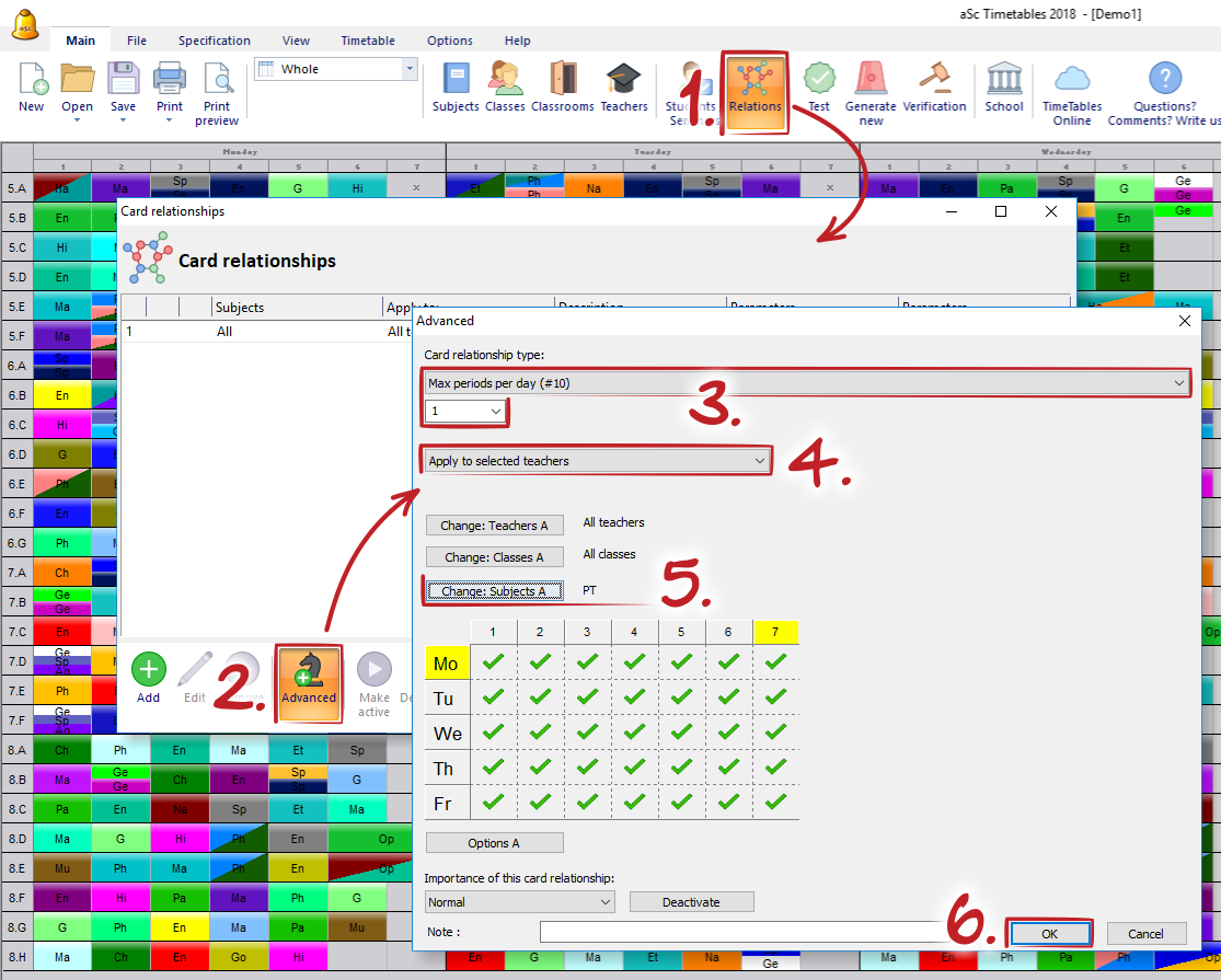 The planning time lessons can be inputted as lessons without class. They are shown in teacher's timetable and they are independent from any class.