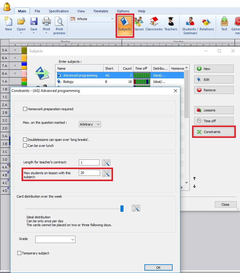 It is also possible to input this for all lessons of some subject in subject constraints: