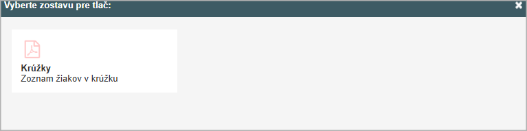 Tlačovú zostavu zoznam žiakov v krúžkoch nájdete v Dokumentácia/Tlačové zostavy/Krúžky.