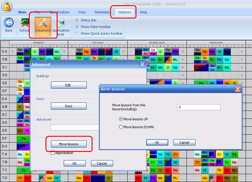 move lessons, advanced functions