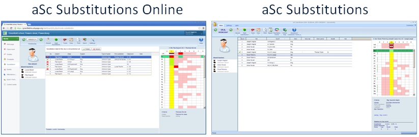 The Substitution module has been ported to HTML version that can run in your browser from any place. You just need one password and you can do the substitution from any PC at school or home. Or any tablet that has internet access. The software operates the same way as the standalone aSc Substitutions application, you can decide which one you want to use.
