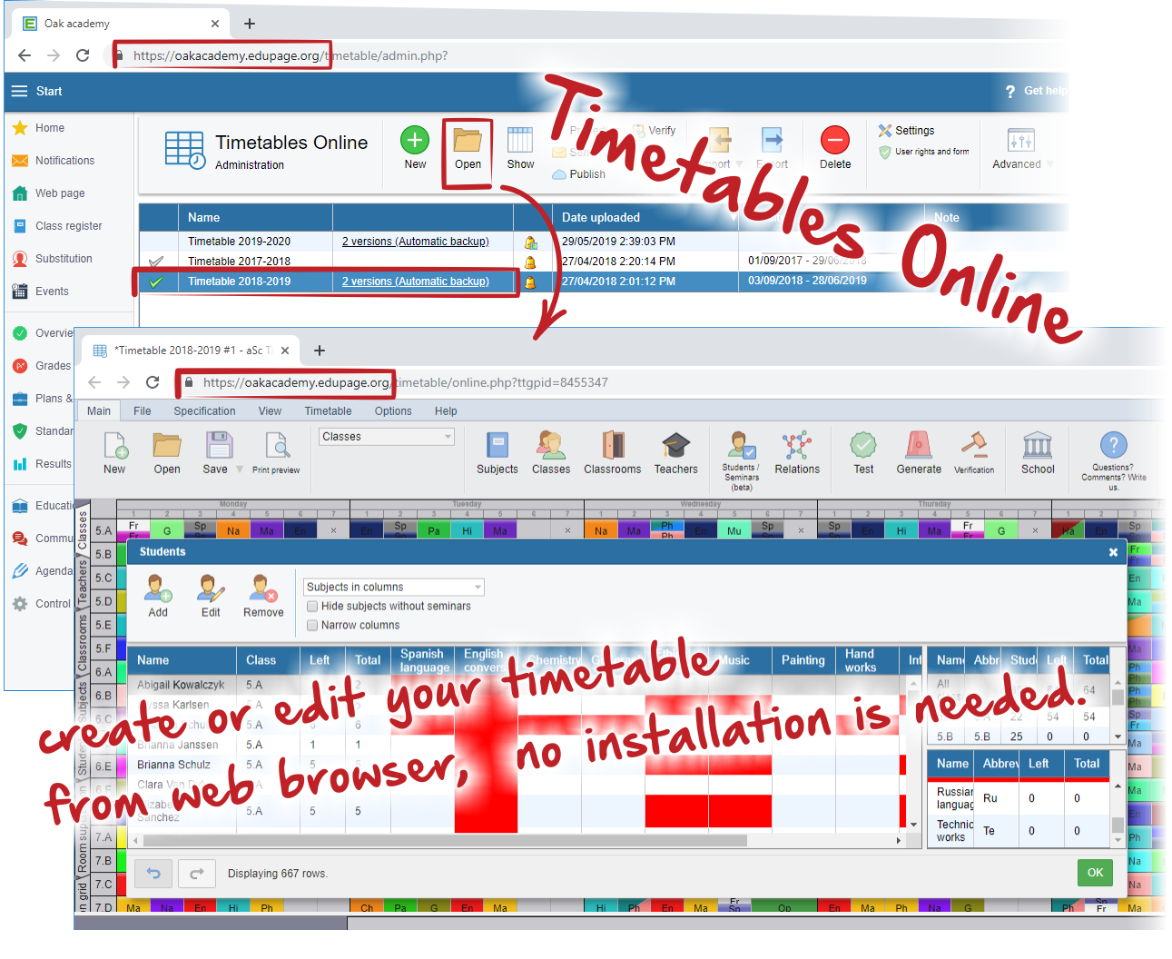 7. TimeTables online. We are constantly improving the online version of aSc TimeTables – it now has more or less all the features that you can find in the windows version. See the list of additions here. For the small changes during the school year – the online version is much more convenient. No need to install it, accessible from anywhere, even your headmaster can use it. For small schools with easier timetable – again the online version might be more useful and practical.