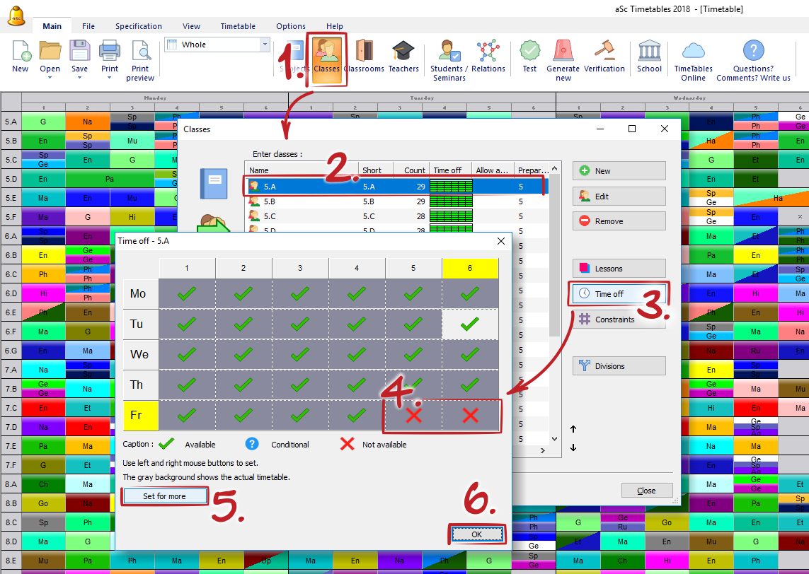 You can use button 'Set to all' to copy this time-off to more classes.