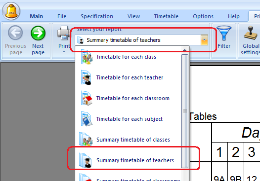 How can I print summary timetables for teachers/classes/classrooms?