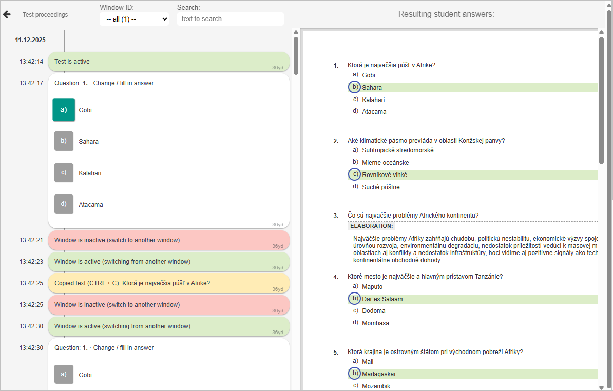 In the Progress tab of the results, the teacher can see various useful details about how the test proceeded: