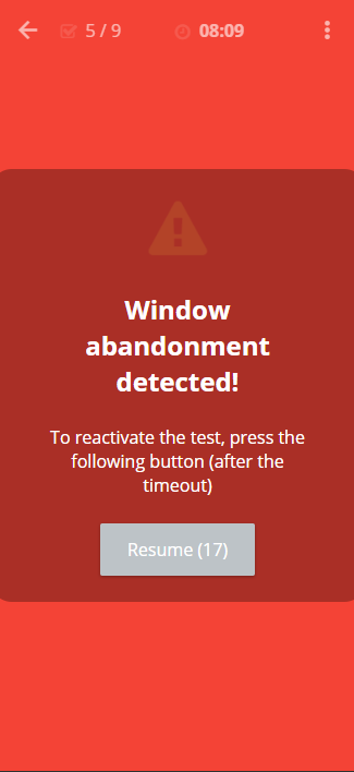 If the teacher has checked the option "Show a warning when leaving the window while the test is running," this function also works on mobile. If the student leaves the test window, a red notification will appear, similar to the one on a computer.