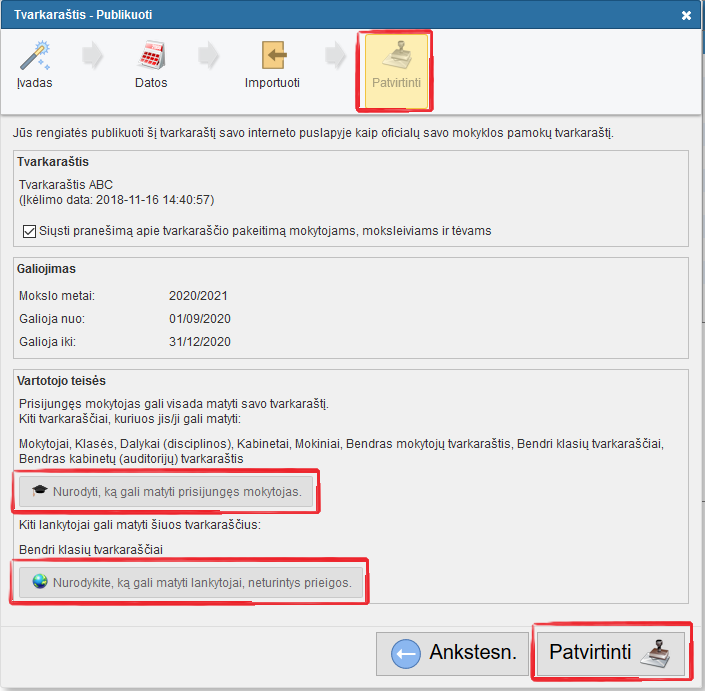 Kaip publikuoti galutinę tvarkaraščio versiją mokiniams ir tėvams
