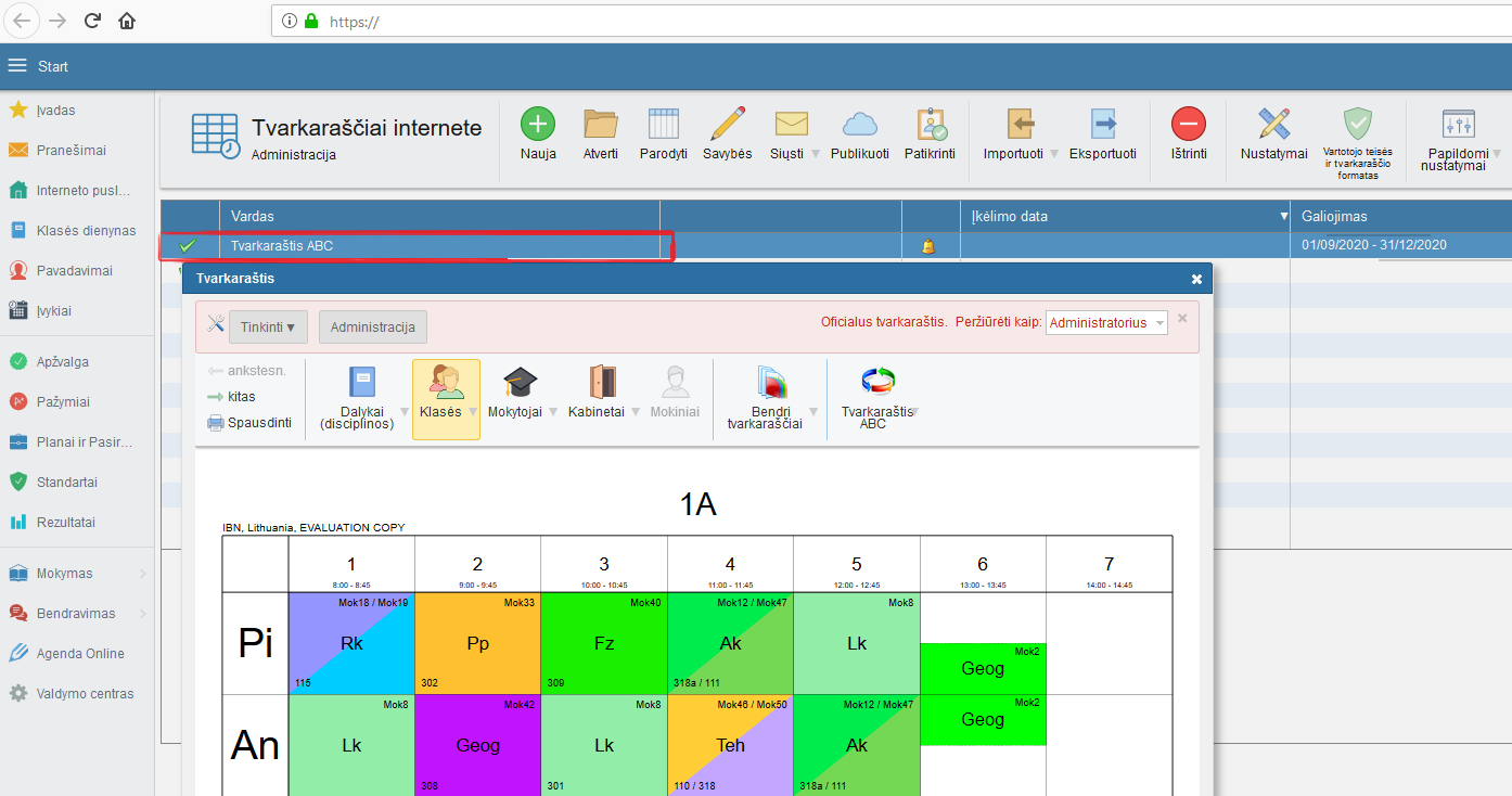 Tvarkaraštis bus išsaugotas Jūsų mokymo įstaigos paskyroje edupage.org serveryje.