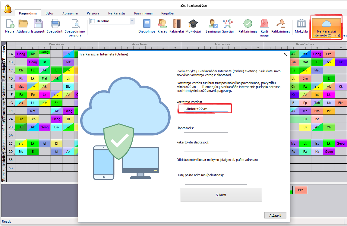 - Turite turėti registruotą programą "aSc Tvarkaraščiai".