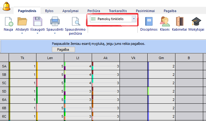 Bendra informacija apie pamokų tinklelį