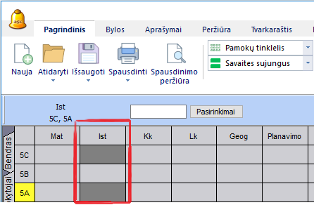 Pamokų tinklelyje galite pasirinkti ir kelias pamokas iš to paties stulpelio: