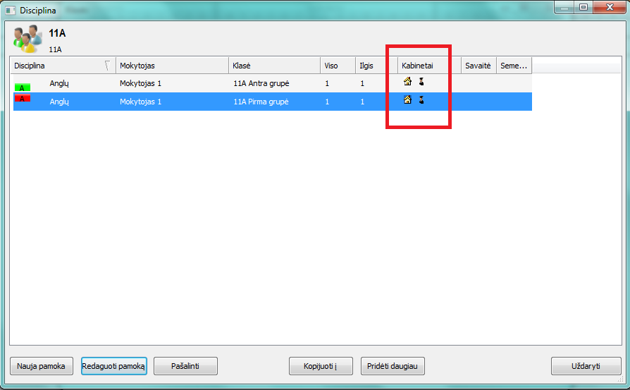 Bet jei pamiršote nurodyti mokytojo kabinetą, rezultatas - abi grupės gali likti tik savo kabinete - kitaip tariant, šios dvi pamokos gali būti tik ne tuo pačiu laiku.