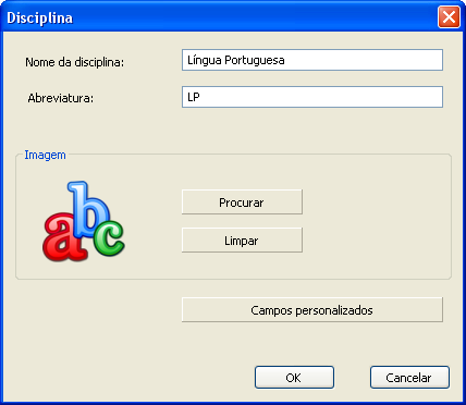 Nesta etapa você insere as disciplinas que serão ensinadas este ano na escola: