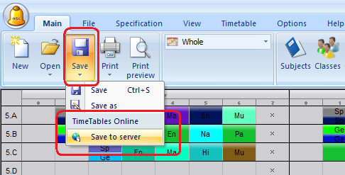 כדי לשמור את מערכת השעות שלך באופן מקוון, אתה צריך ללחוץ על "מערכת שעות מקוונת" בתפריט, ולאחר מכן בחר "שמור את ..."