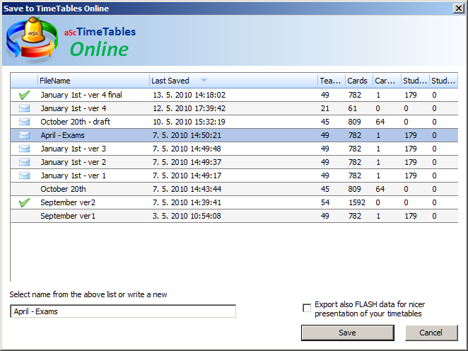 אתה יכול לבחור אחד מהשמות מתוך הרשימה ולחוץ על שמור - זה יחליף את הקובץ המקוון שנבחר עם קובץ מערכת השעות הפתוח כרגע.