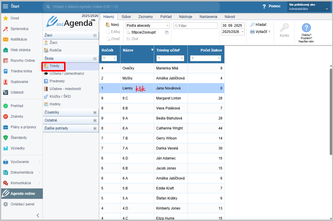 Poznámka: Žiaci tento údaj - organizačná zložka - "zdedia" z nastavenia svojej triedy.