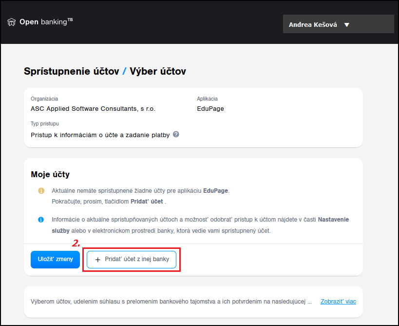 --> Po udelení súhlasu budete presmerovaný späť na autorizačný portál Tatra banky, kde vidíte všetky účty, ktoré ste si pripojili.