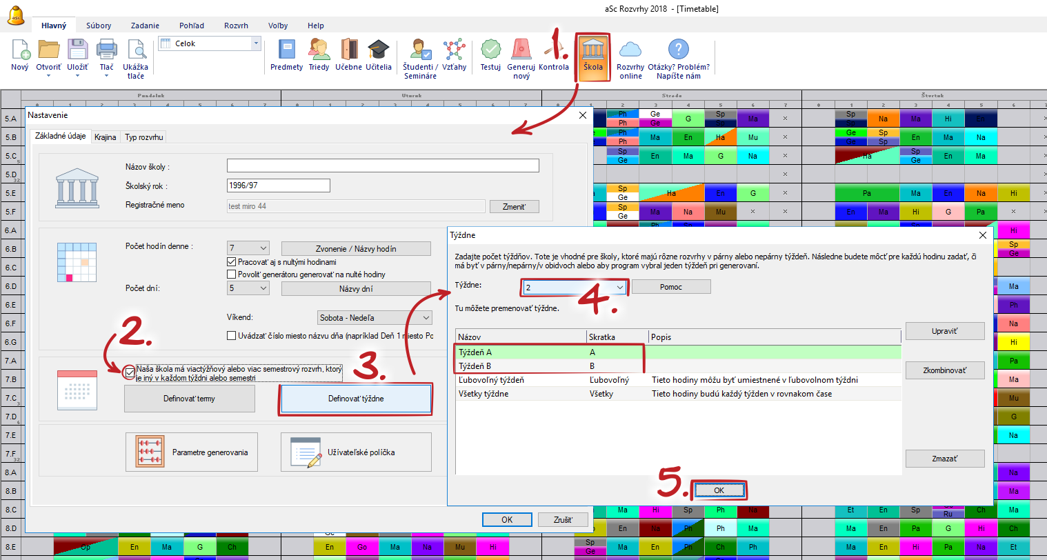 Ak má Vaša škola rôzne rozvrhy na párny a nepárny týždeň, možete v nastaveniach školy povedať, že chcete robiť rozvrh pre dva alebo viac týždňov: