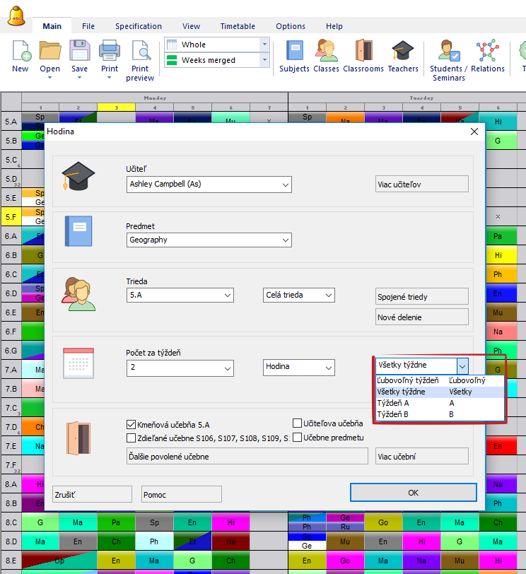 Následne pre každú hodinu môžete povedať v ktorý týždeň sa má uskutočniť: