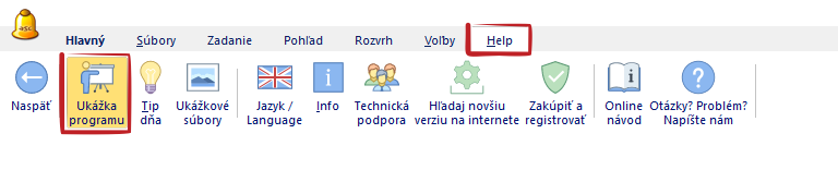 Ukážku programu môžete spustiť buď z dialógu demo verzie alebo z menu Help/Ukážka programu: