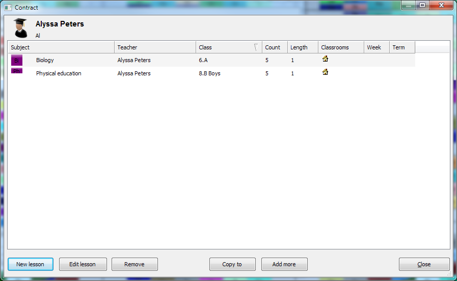 In this simple example, the teacher is teaching all kids from 6A Biology and boys from 8B physical education. Probably some other teacher will have PE with girls from 8B: