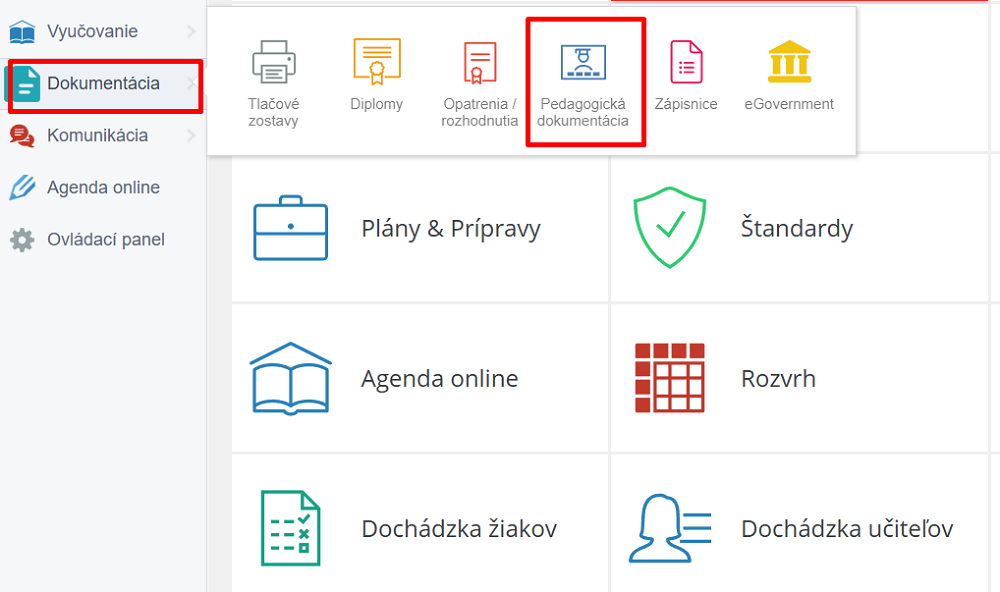 V ľavom menu zvoľte "Dokumentácia/Pedagogická dokumentácia"