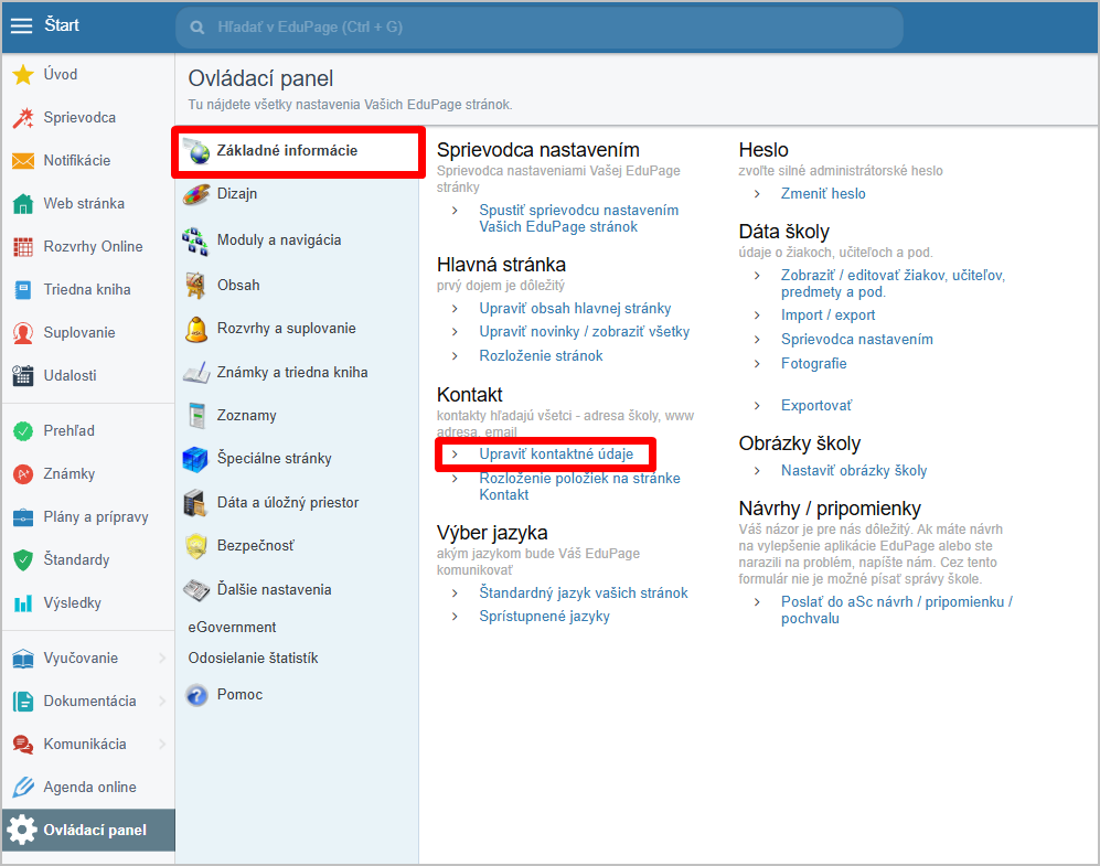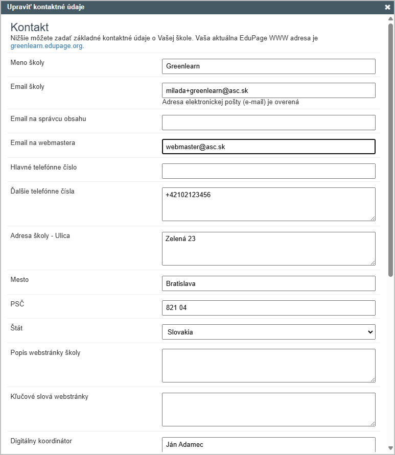 Ak sa na záv. správe netlačí správna adresa školy, skontrolujte si tieto nastavenia: