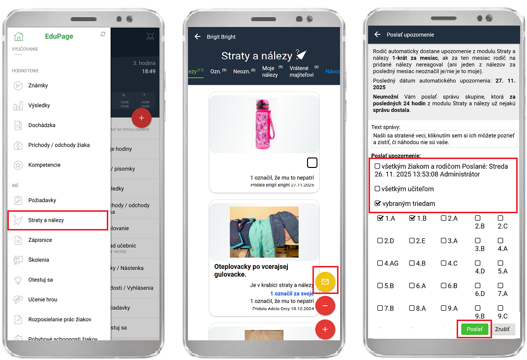 Vyberte, či chcete poslať upozornenie celej škole, všetkým učiteľom alebo iba vybraným triedam.