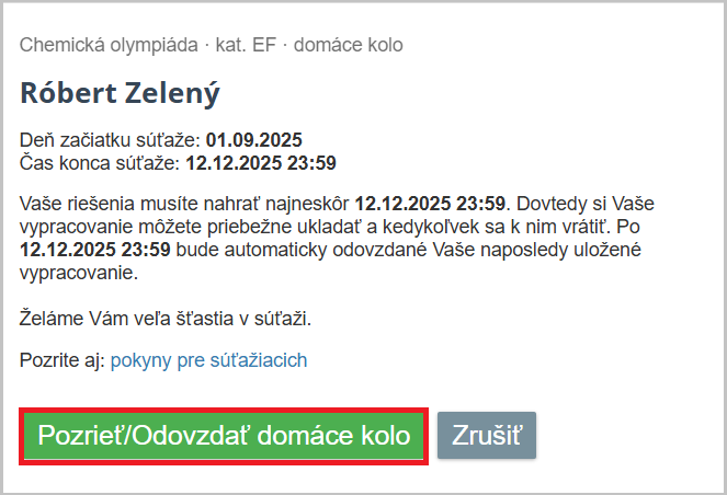 Klikni na zelené tlačidlo Pozrieť / Odovzdať domáce kolo.