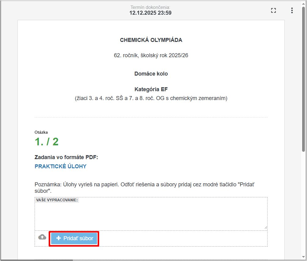 Poznámka: Názov súboru nie je podstatný. Do jednej úlohy môžeš priložiť aj viac súborov.