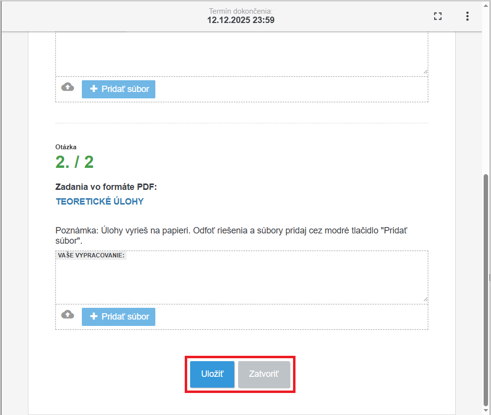 Pri každej úlohe je modré tlačidlo Pridať súbor.
