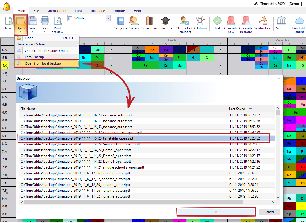 В случай че, изгубите свой файл или той се повреди, или случайно го презапишете с грешни данни, от менюто може да използвате „Файл“ – „Отваряне от локален архив“. Тогава изберете предишната версия на своя файл от списъка с архивирани документи.