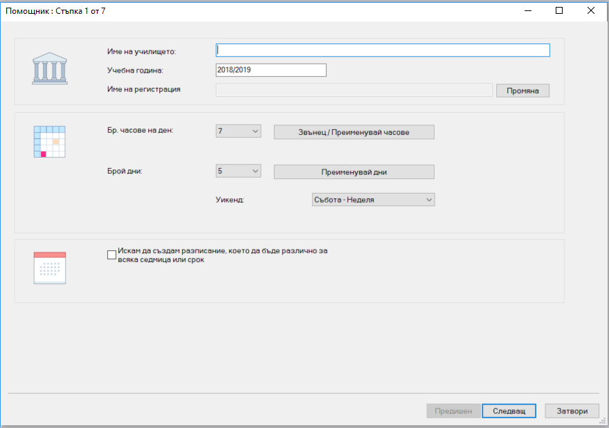 3. Дни, за които ще създавате седмично разписание (ако във Вашето училище има часове и в събота, е необходимо да включите в списъка и събота).