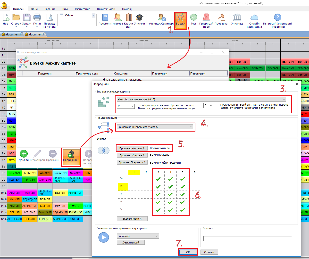 Пример: Обяд между 3-ти и 6-ти час. Tова означава, че има 4 часа на разположение. Ние може да въведем това и по този начин да сме сигурни, че по време на 3-6 учебни часове даден учител може да има максимум 3 часа.