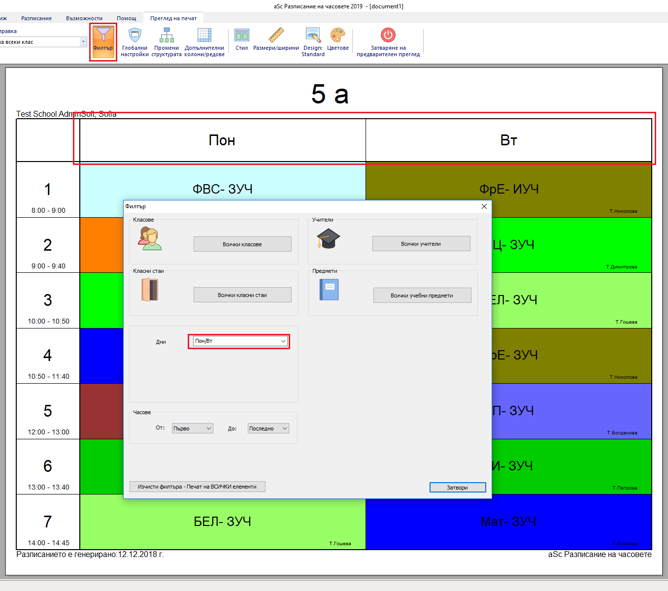 Как да принтирам отчет само за понеделник или вторник само? (възможна опция във версия 2009)