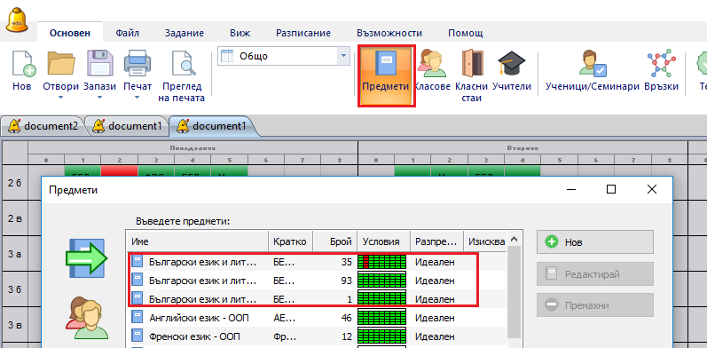 След като вече имате ученици, можете да добавите учебните предмети (курсове), които те са избрали. Ако не сте правили това преди, може да се наложи да затворите учениците и да въведете учебните предмети.