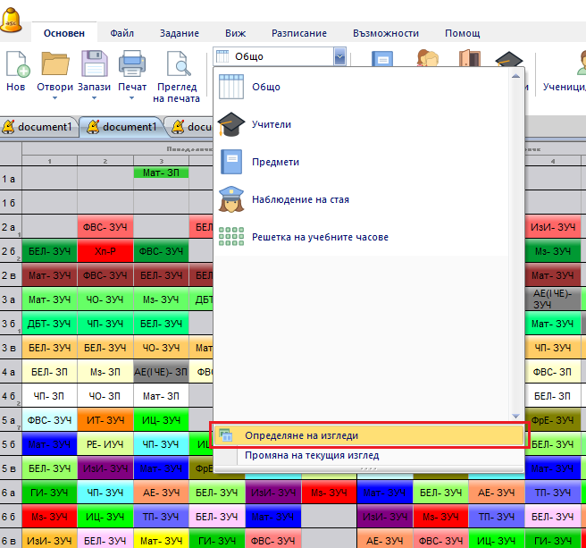 Въведете, кои дни ще се показват, както и брой часове на ден. Определете брой часове като включите и нулевите часове. След това изберете класовете или учителите, които желаете да виждате на този изглед.